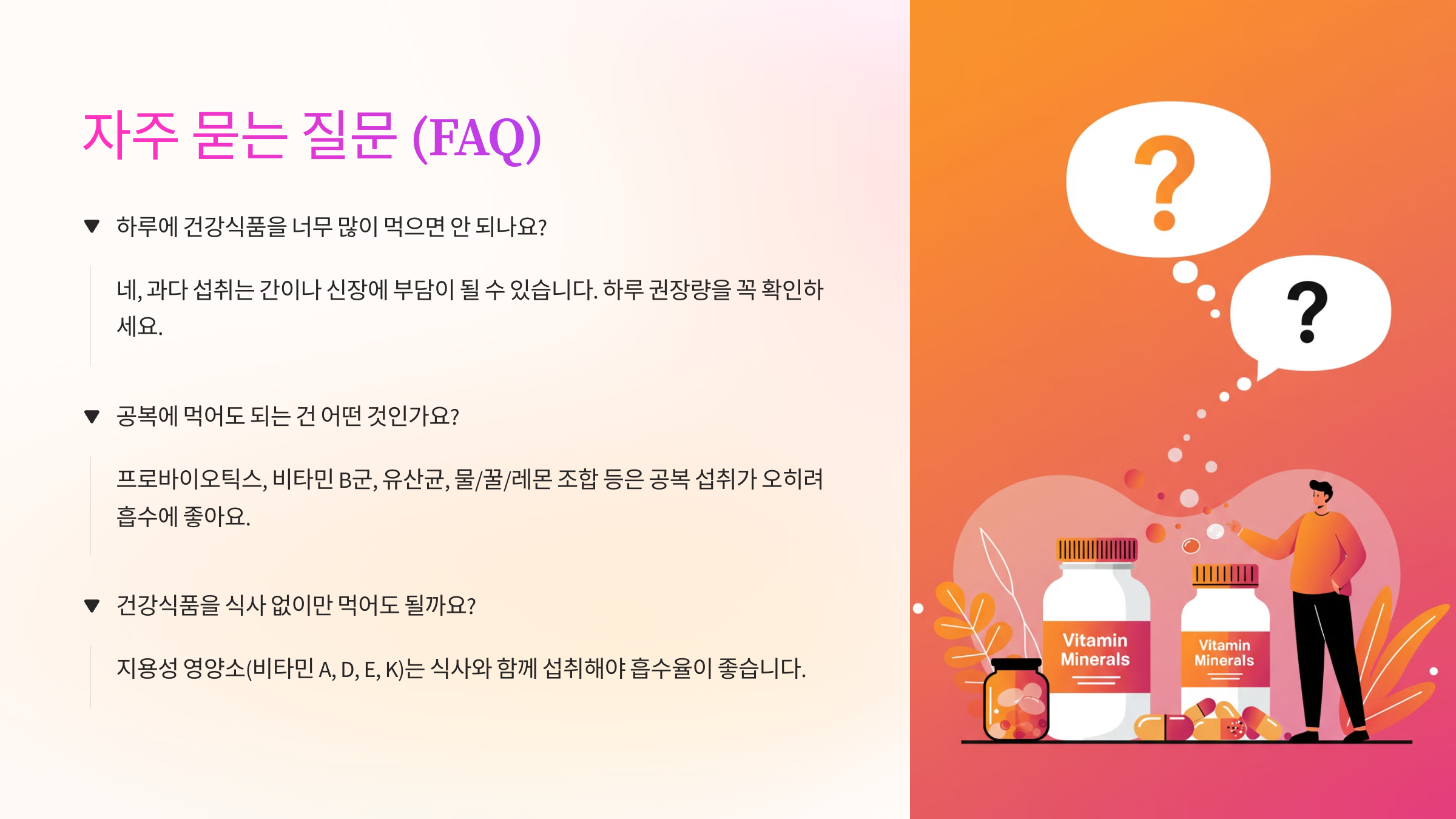 Q1. 하루에 건강식품을 너무 많이 먹으면 안 되나요?