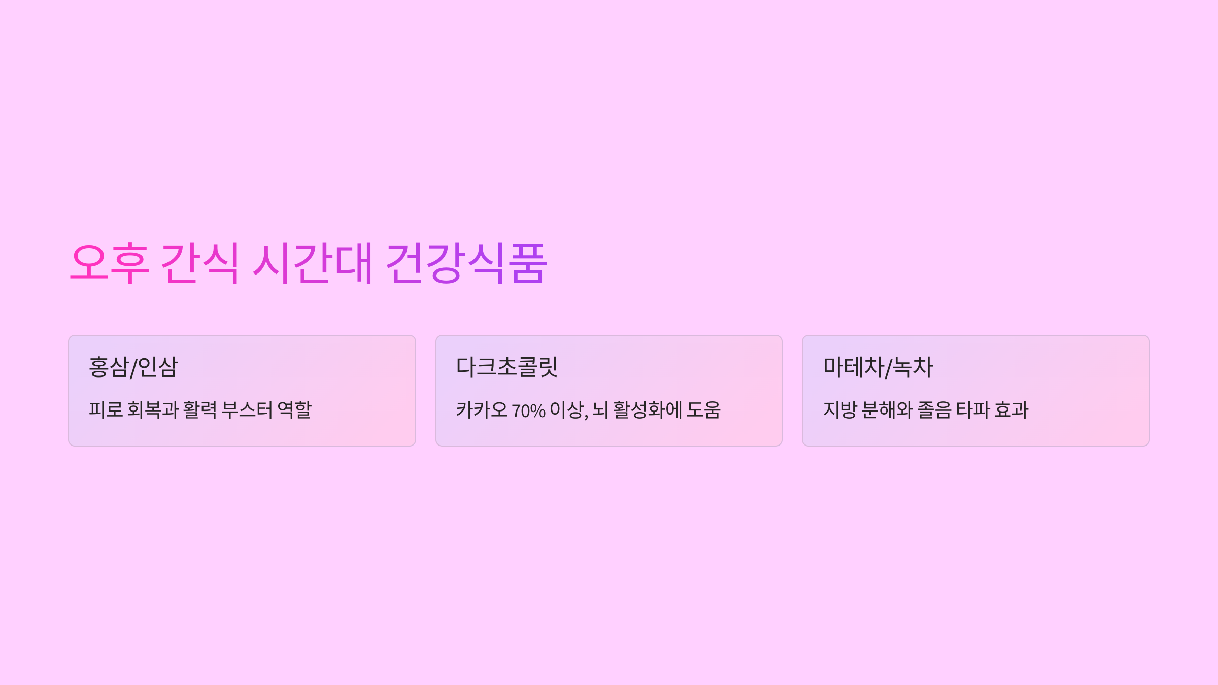 | 오후 3시경 | 홍삼, 녹차, 다크초콜릿 |