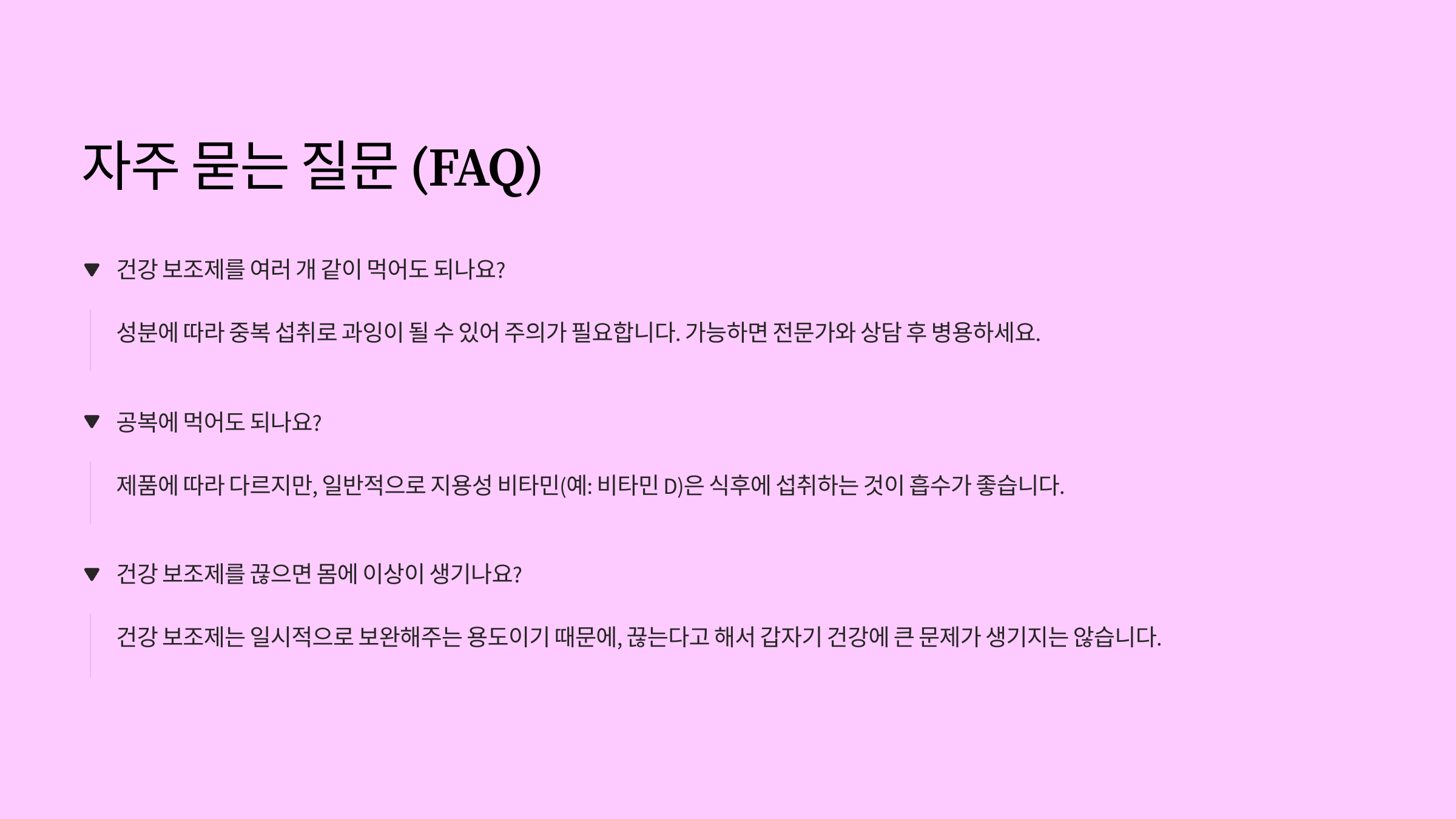 Q3. 건강 보조제를 끊으면 몸에 이상이 생기나요?