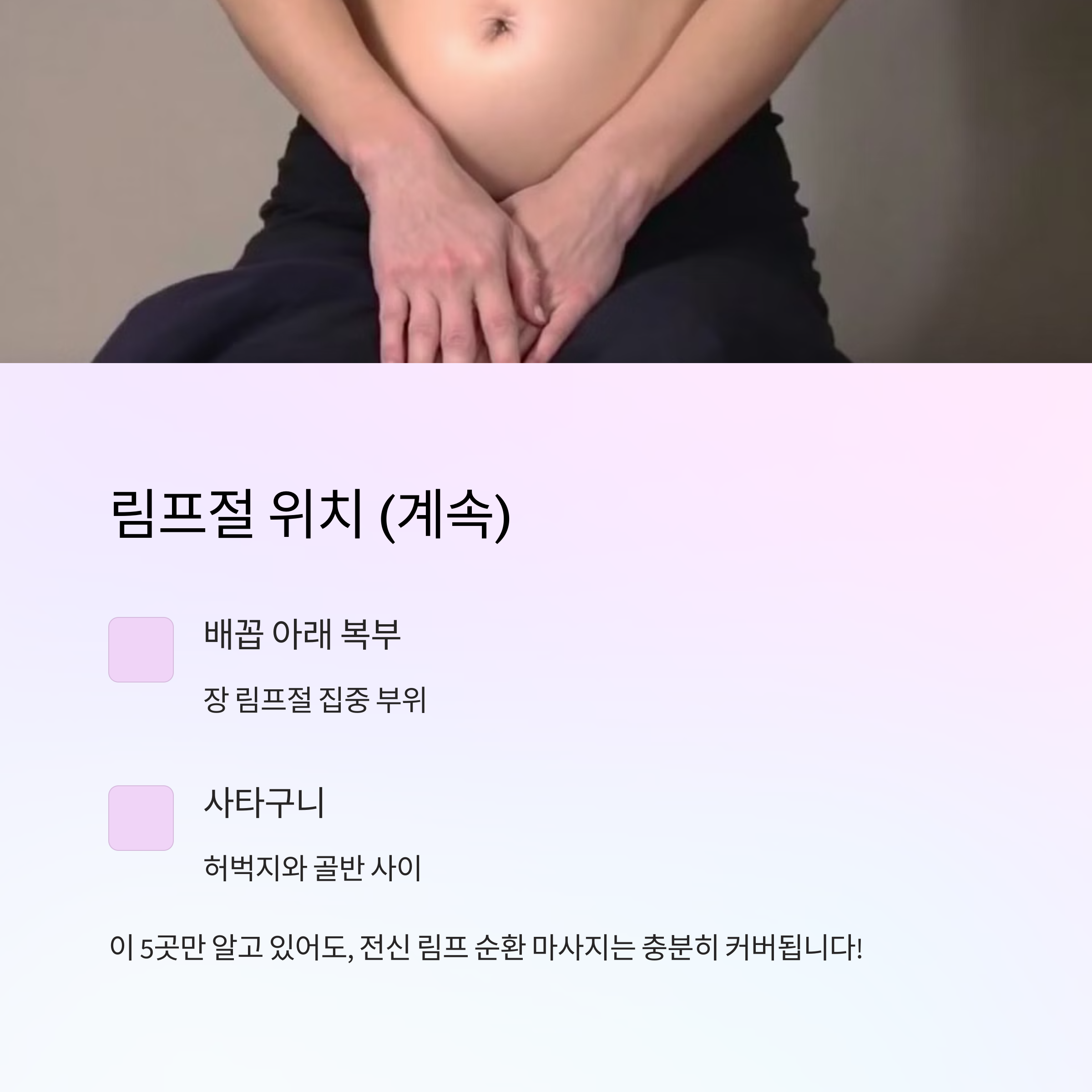 👉 이 5곳만 알고 있어도, 전신 림프 순환 마사지는 충분히 커버됩니다!