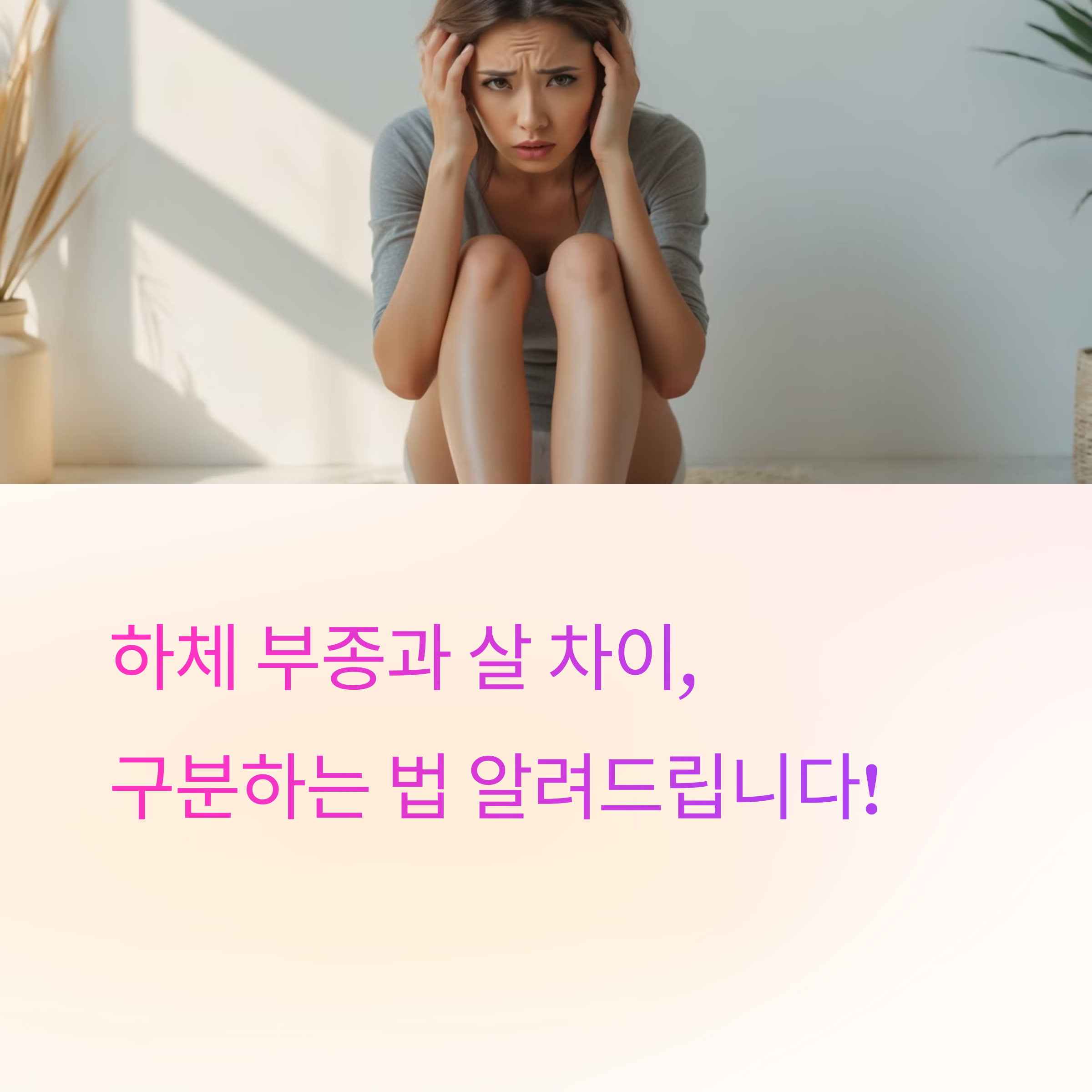 여러분, 다리나 허벅지가 뚱뚱해졌다고 느낄 때, 그게 정말 ‘살’ 때문일까요? 사실 의외로 많은 분들이 부종을 ‘살’로 착각하곤 해요. 그래서 다이어트만 열심히 했는데도, 결과가 안 보이는 거죠😢 오늘은 딱! 하체 부종과 살을 구분하는 법 알려드릴게요. 셀프 테스트부터 관리 팁까지 한 번에 정리해드립니다!