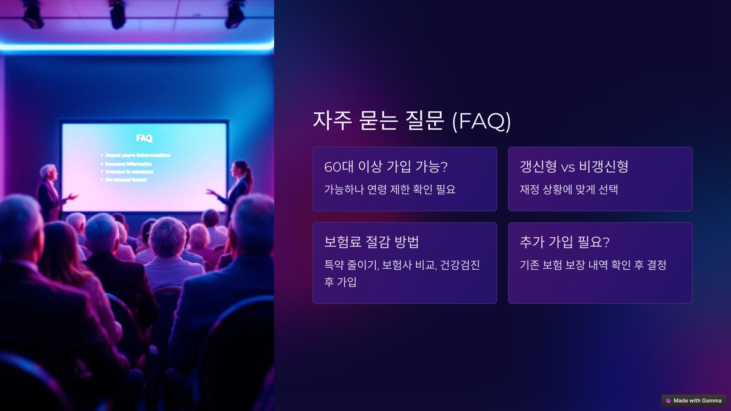 60대 이후 보험 가입 시 보험료 부담이 커질 수 있습니다. 하