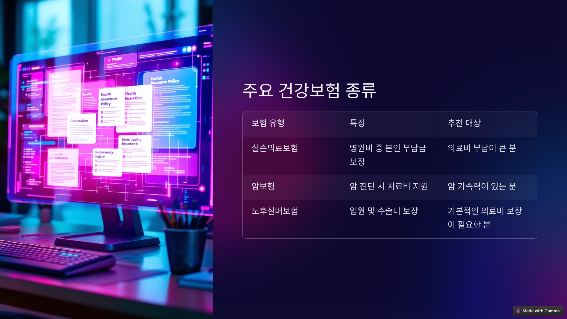 | 보험 유형 | 특징 | 추천 대상 |